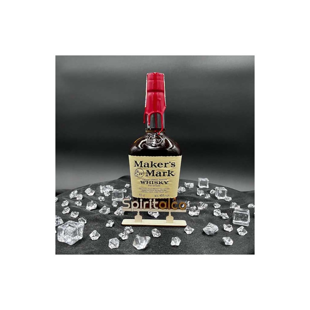 Maker’s Mark sa predáva v štvorcovej fľaštičke s dlhým hrdlom, ktorá je uzavretá červeným skrutkovacím uzáverom, ktorý je ponorený do červeného pečatného vosku.
